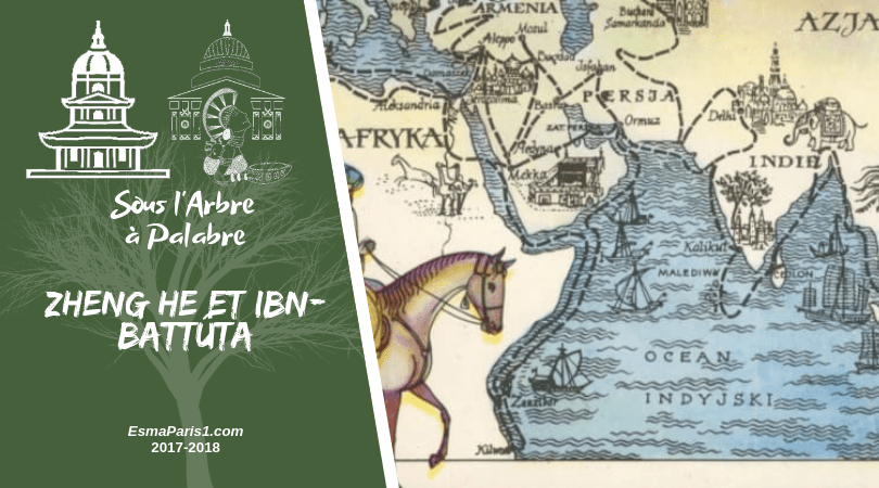 C’est donc en prenant appui sur ces deux figures singulières, Ibn-Battûta le Marocain et Zheng He le Chinois que s’amorce la collaboration entre l’Association des Mondes Asiatiques (AMA) et les Etudiants de Panthéon-Sorbonne pour les mondes africains (Esma). À quelques décennies d’intervalle, chacun de nos deux protagonistes a foulé les terres du continent de l’autre, un premier contact à mettre en parallèle avec les relations tissées aujourd’hui entre les deux continents. Comment s’est passée cette prise de contact précoce ? Cet article propose de penser la rencontre à l’aune des représentations de ses acteurs, en tâchant de comprendre les mots et les actes qui naissent de la confrontation à l’altérité au XIVe – XVe siècle. Notre propos s’attachera à deux échelles, d’une part les interactions des hommes, d’autre part, le développement de nouvelles conceptions du monde qui en découlent.