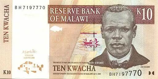 Billet de 5 kwacha de 2005, la monnaie nationale malawienne actuelle, sur lequel est représenté John Chilembwe.
